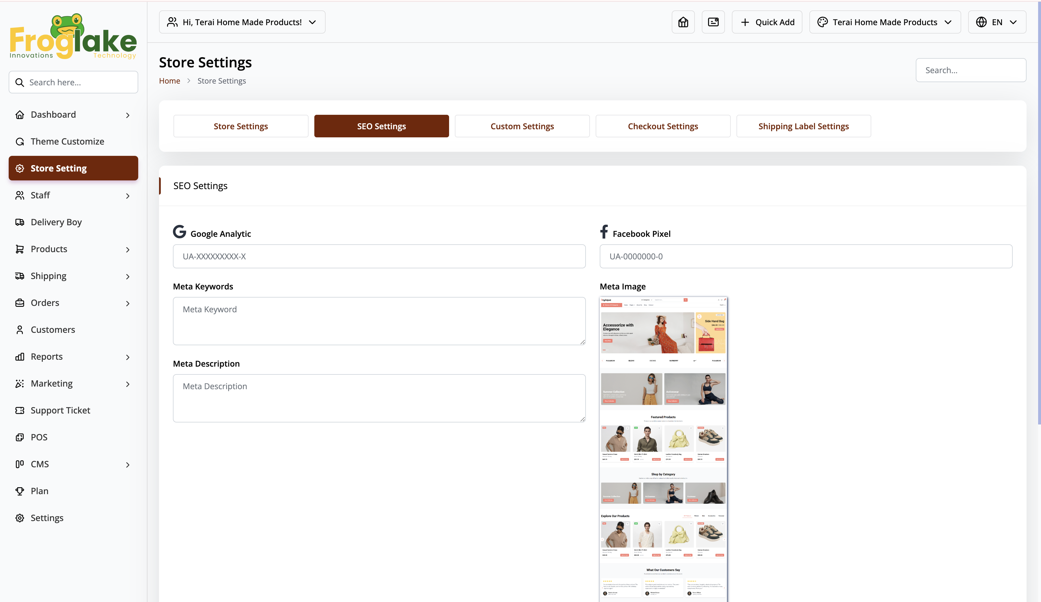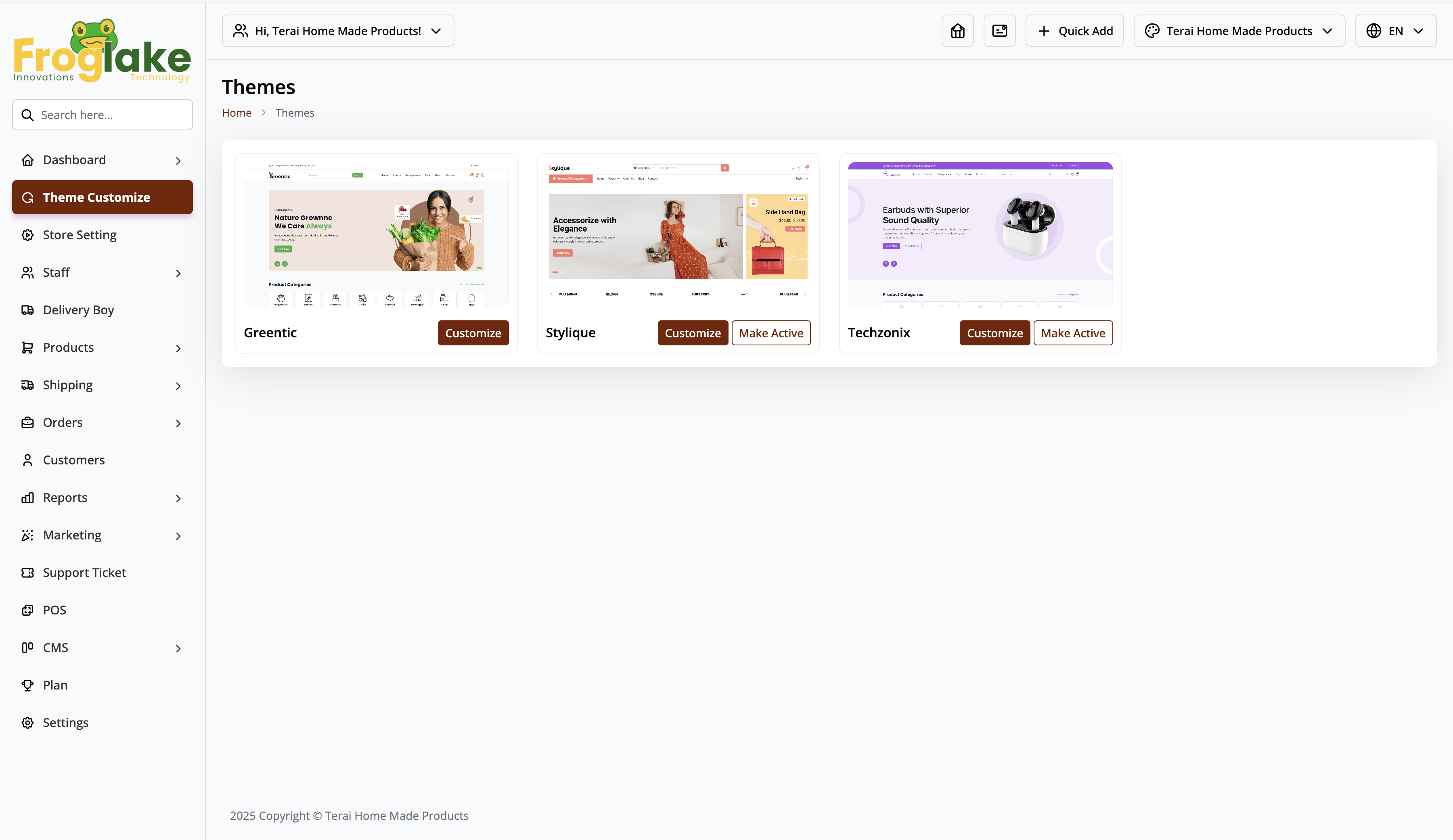 FrogLake eCommerce is a next-generation cloud-based online store builder that helps businesses launch their digital stores effortlessly. With multi-theme and multi-store support, you can create, customize, ship and manage your online store — all from a single dashboard.